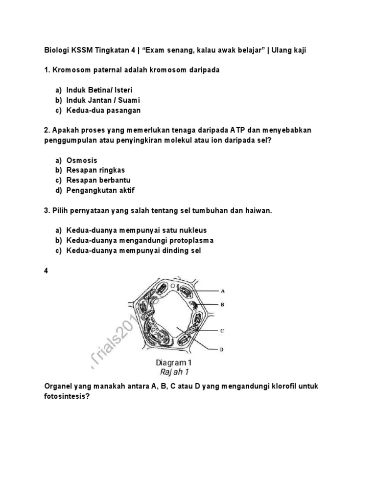 Koleksi Soalan Dan Jawapan Biologi Tingkatan 4 Bab 2