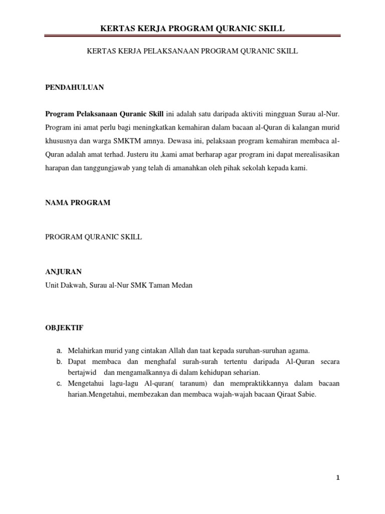 . Kem Intervensi Literasi Al-Quran. Jemputan dan aturcara majlis khatam al quran iftar jama ie dan solat hajat perdana pmr spm 2010 majlis khatam quran dan berbuka puasa serta solat hajat pmr spm dengan hormatnya saya diarah merujuk kepada perkara di atas. Contoh Kertas kerja ringkas.